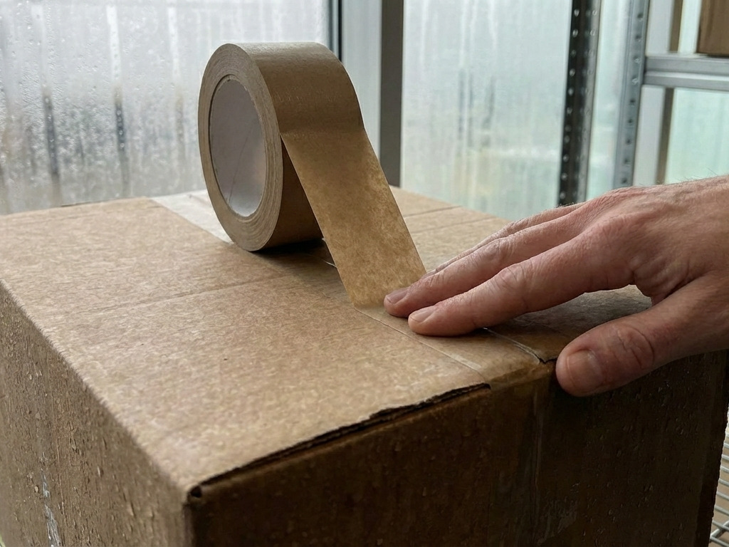 クラフトテープは温度や湿度の影響を受けやすい資材です。結露や高湿度環境ではダンボール表面に微量の水分が付着し、粘着剤が十分に密着できなくなります。その結果、フラップ部分が浮いたり、テープの端部が剥がれたり、長期保管中に自然剥離が起こるといったトラブルが発生します。特に春先の寒暖差による結露は、輸送後に粘着不良が顕在化するケースも少なくありません。