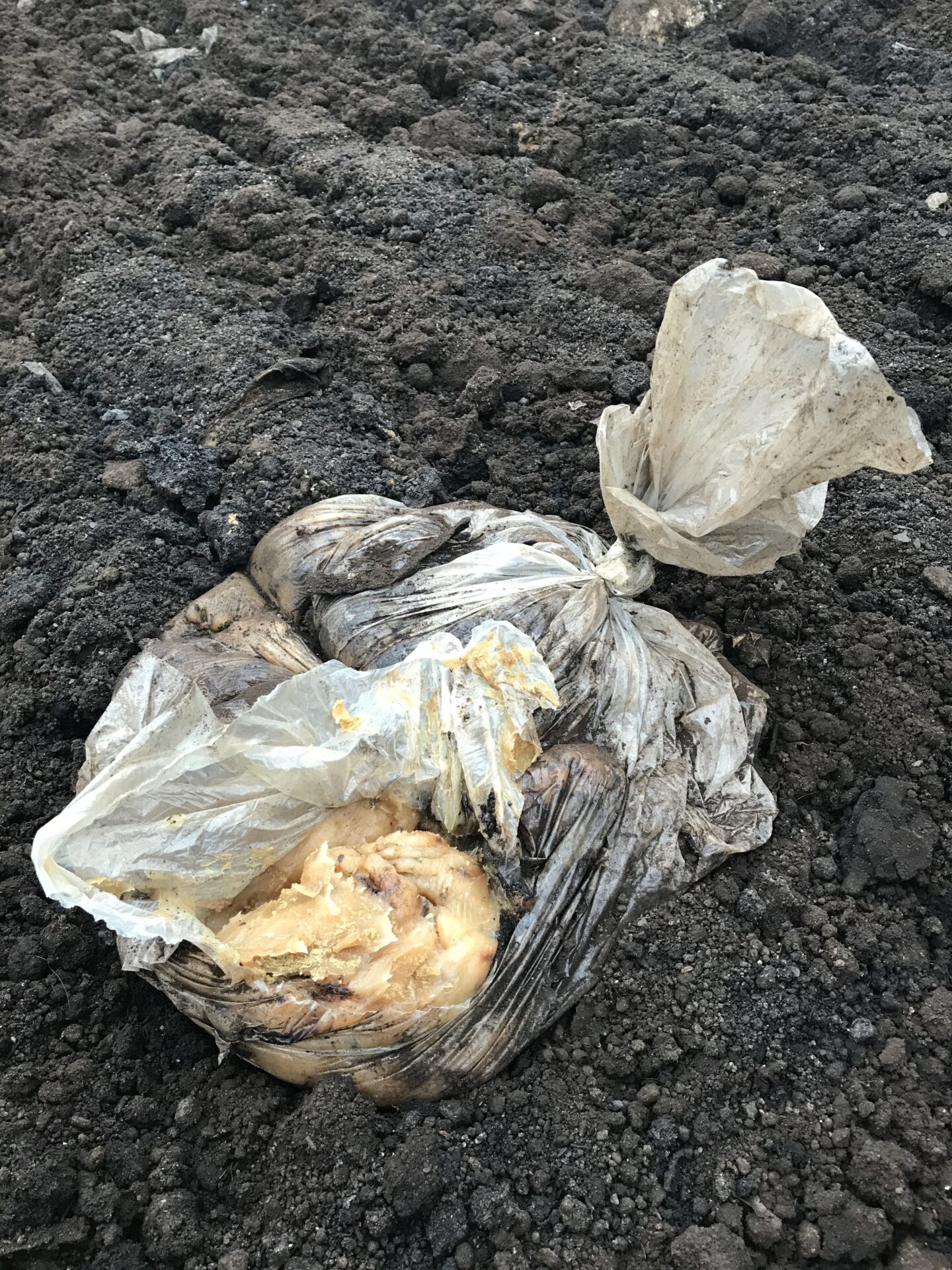 •写真は初期段階なので、袋も分解されず残っている。